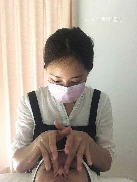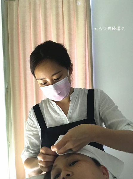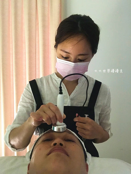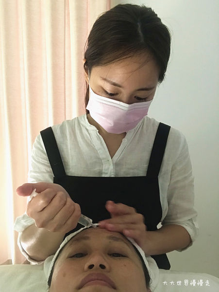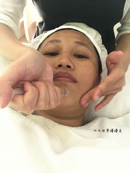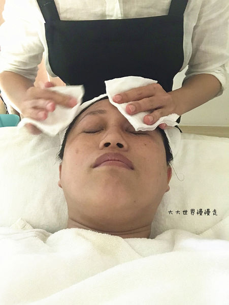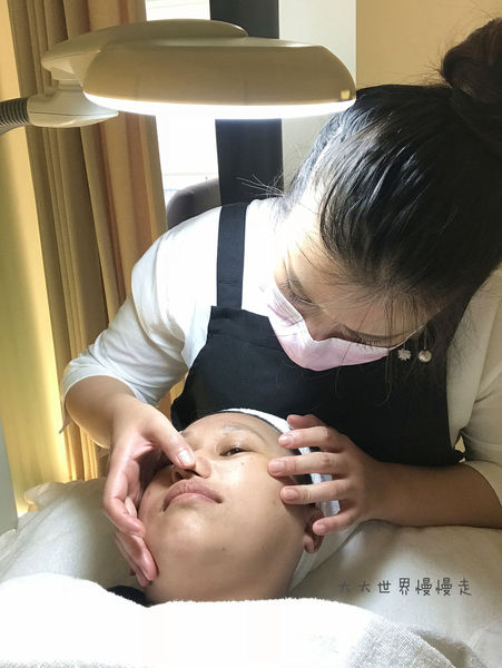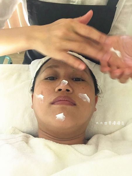 卸洗完臉部,店長會進來依我的皮膚來評估今天的課程保養,