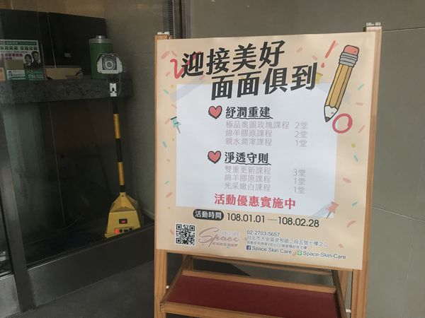 在大樓門口就有SPACE SKIN CARE的優惠廣告啦