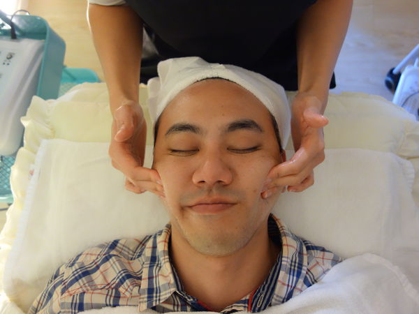 待導入儀結束過後,美容師接著幫Mr.H進行精油按摩