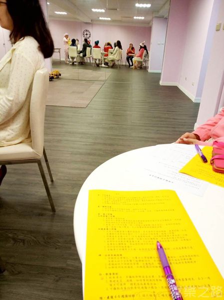 ☆在大寶遊戲區旁邊就是媽媽教室了。上課之前會簽到,一人拿一份講義,可以做筆記; 還有課後問卷調查表,上課時,老師也會主動關心大家平時會遇到的狀況。。★媽媽教室課程體驗照。