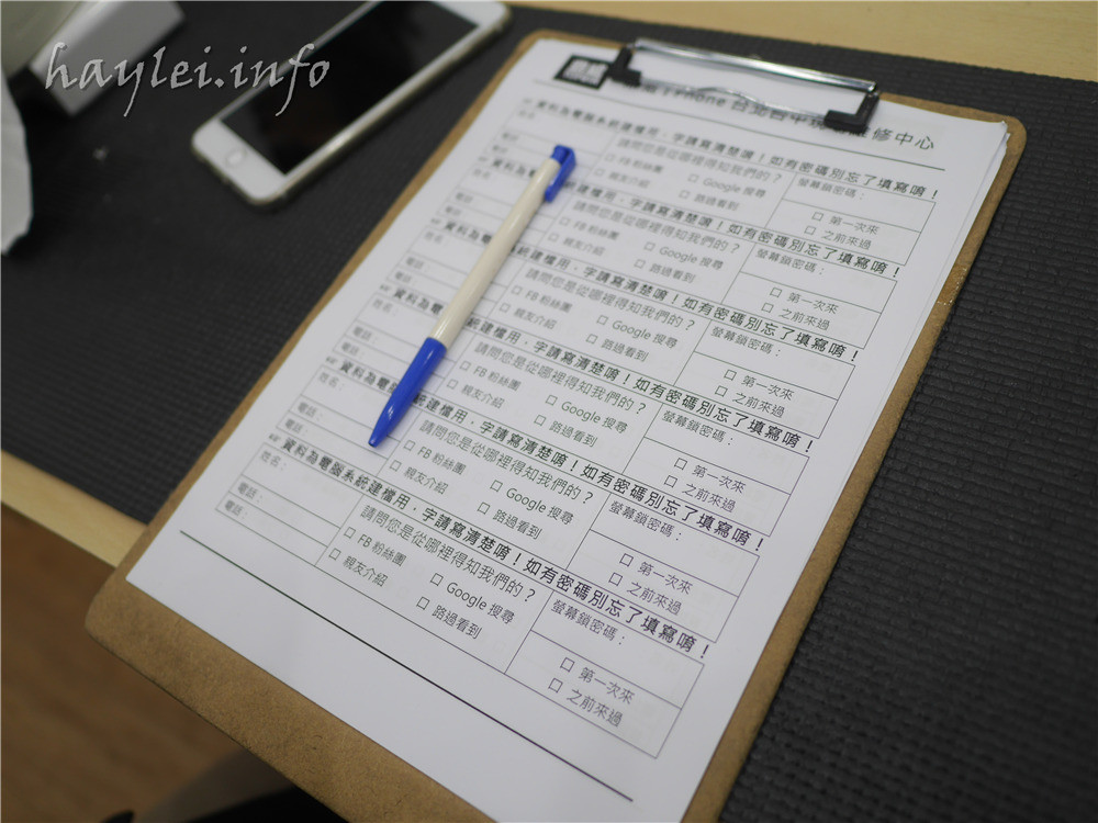 我這次來到 台中北區 的 鼎威蘋果專業維修台中進化旗艦店 整修我的手機,一進門先跟店家說明來意並填寫表單,接著就會有美女店員來跟你確認手機狀況,並開立一張維修報表跟你說明。