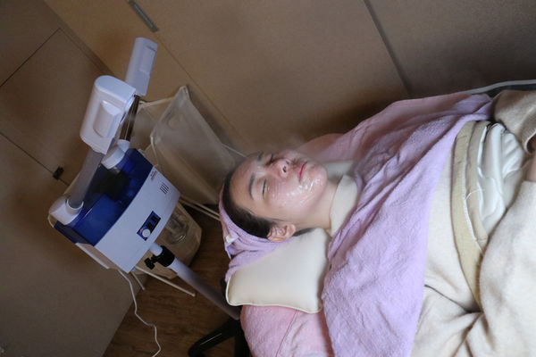 ▲濕敷的時候還會搭配儀器蒸臉,讓毛孔自然的張開,前置作業就非常的講究阿。