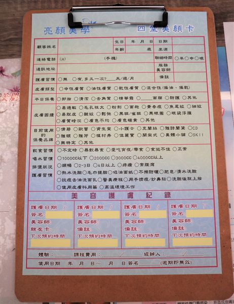 ▲因為我是第一次來訪,會先填寫基本資料,幫助店家更了解客人的狀況。