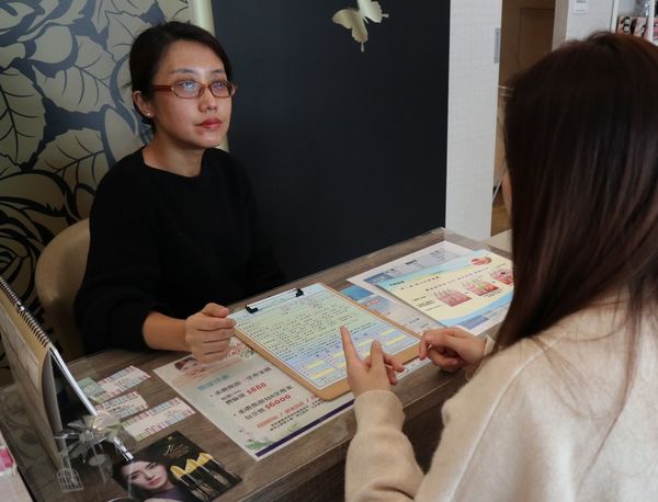 她會先詢問客人在意的臉部問題,然後針對你困擾的地方去做解說成因。