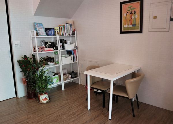 ▲進入後方的美容室內是乾淨明亮的空間,以白粉色系為主,讓人放鬆舒服。