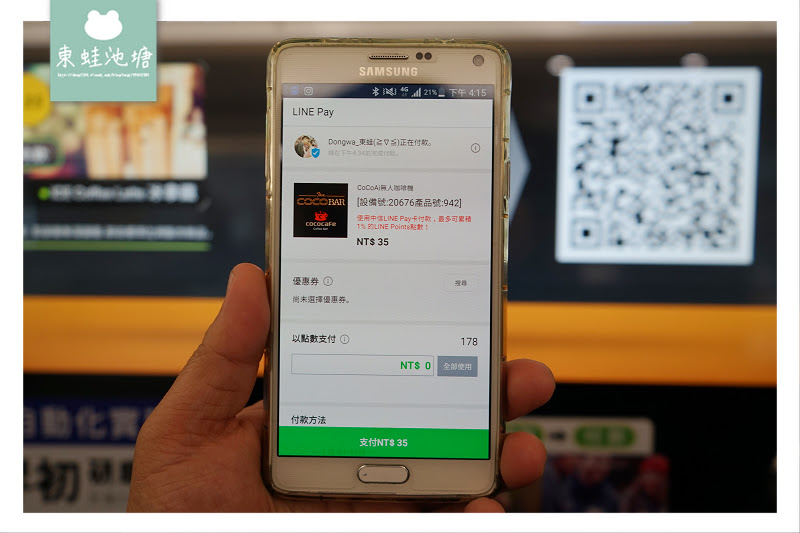 掃完後,手機就會出現 CoCoCafe 無人咖啡機的選項和價格,直接按支付就可以完成結帳流程了