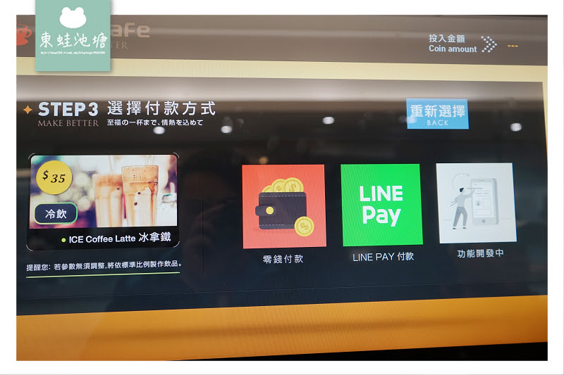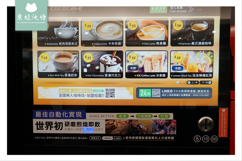 CoCoCafe 的消費方式可以使用零錢或使用LINE支付,如果零錢不夠的話,這裡有兌幣機可以使用