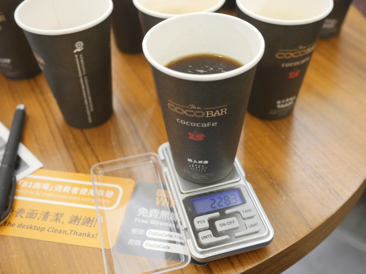 每一杯基本上都是大約8~9盎司(約250ml的咖啡, 星巴克小杯量為8oz 236ml), 杯子的部分大約是11g, 你看到不足的部分都是被我喝掉的(笑)