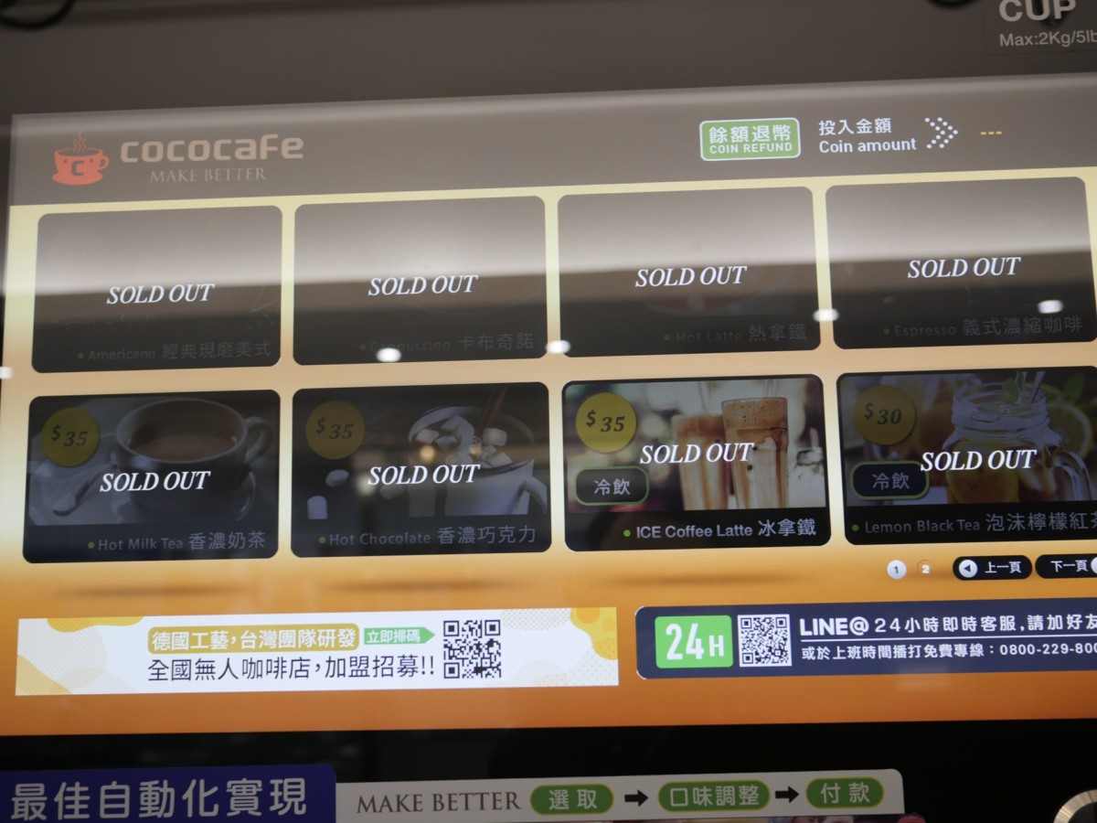 取完杯後, 正常會顯示Sold Out一秒後再恢復營業