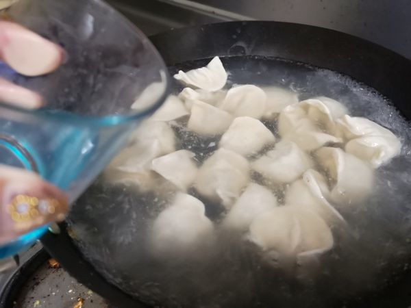 煮水餃我們家也沒有任何的撇步,水滾後把水餃放下去,等水第二次在滾起的時候再加水2次滾,不過在這中間我會加一點橄欖油,避免水餃黏在一起