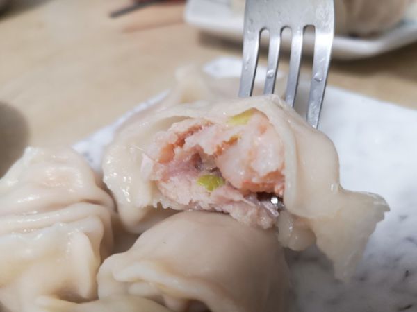 特別將蝦仁切塊混合在肉餡裡頭,所以吃起來口感相當紮實,不會給人感覺黏糊的口感