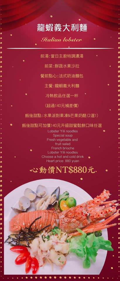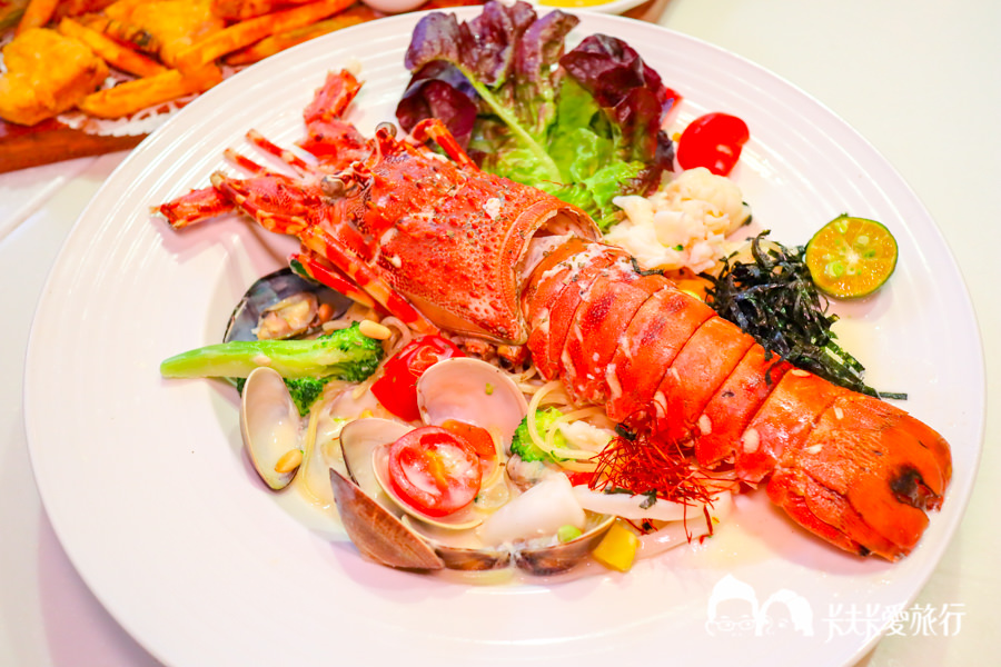 這是上次到新埔店沒嘗過的料理,限量的龍蝦套餐,一定要來嘗鮮看看,附有湯、前菜、餐前點心、主餐、冷熱飲任一杯(超過140元補差價)及飯後甜點:水果派對果凍或芒果奶酪 (可加價140元升級甜蜜鬆餅口味任選)