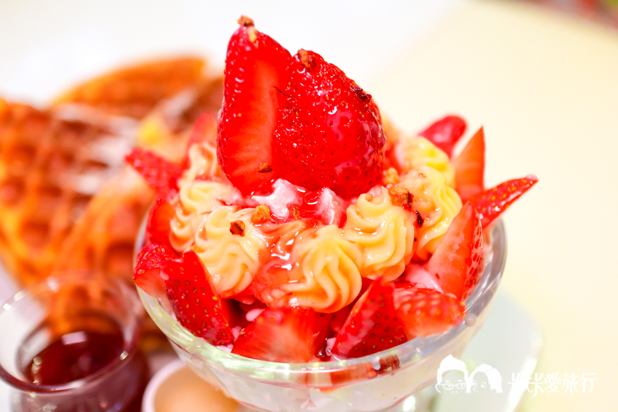 這份是來吃下午茶的最佳選擇,鬆餅搭配新鮮草莓及明治草莓冰淇淋