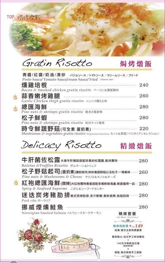 義大利麵及焗烤燉飯 + 149可升級精緻套餐
