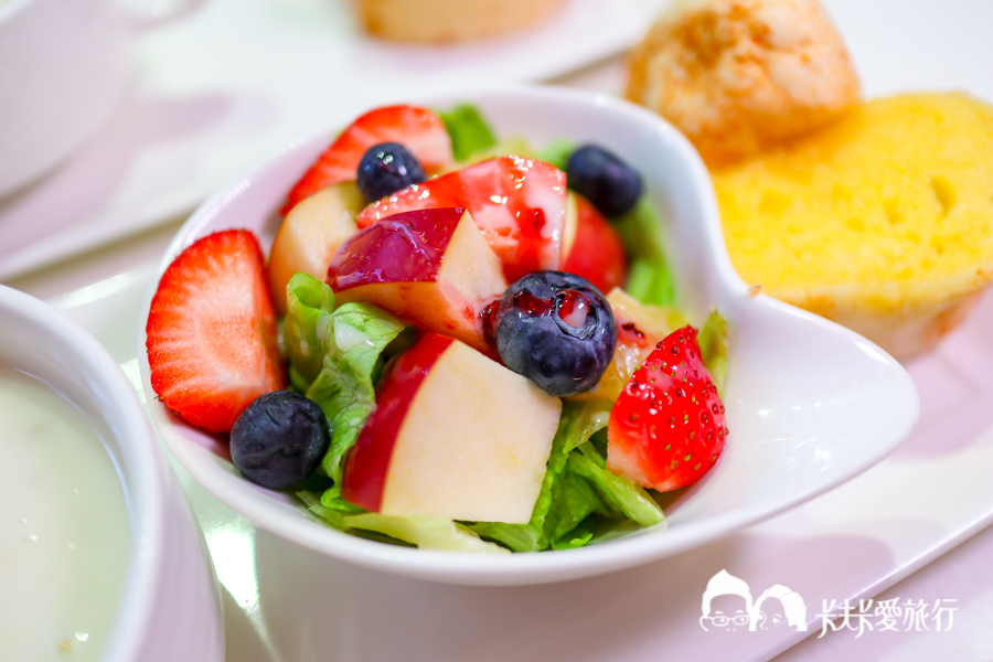 如果是點牛排或是龍蝦義大利麵套餐,另外附有這個前菜-鮮蔬水果沙拉,各式酸甜水果及生菜,非常開胃