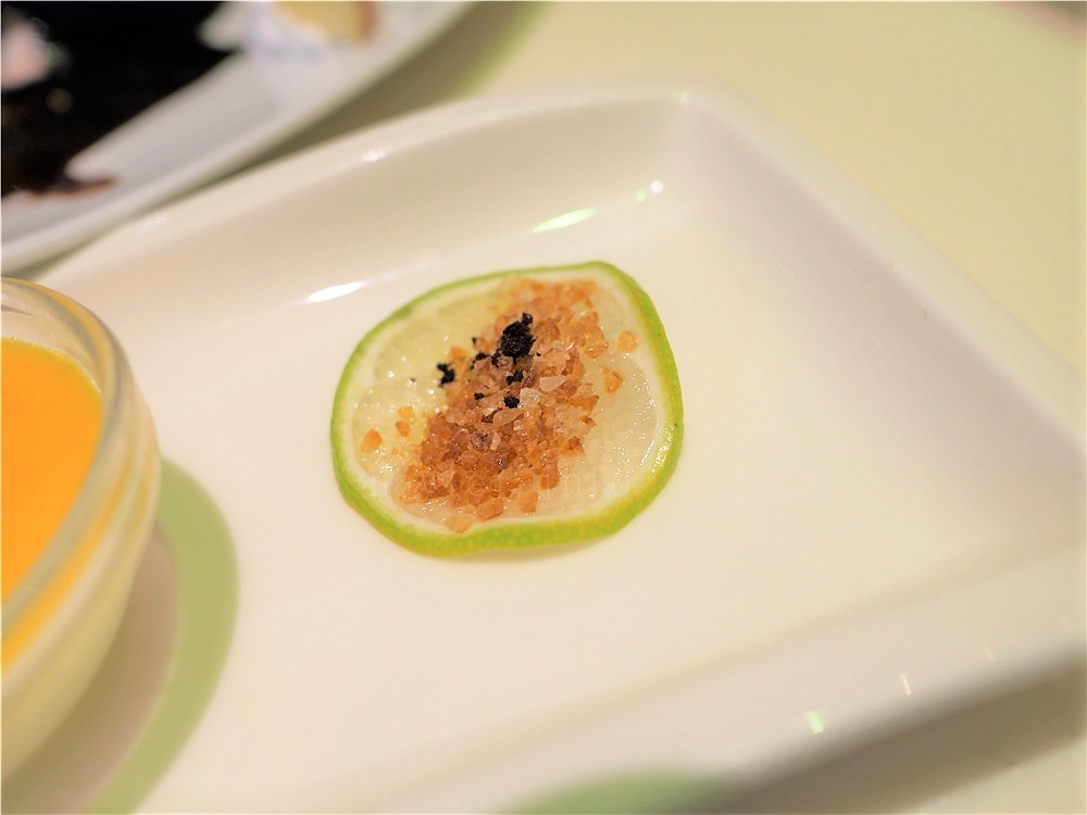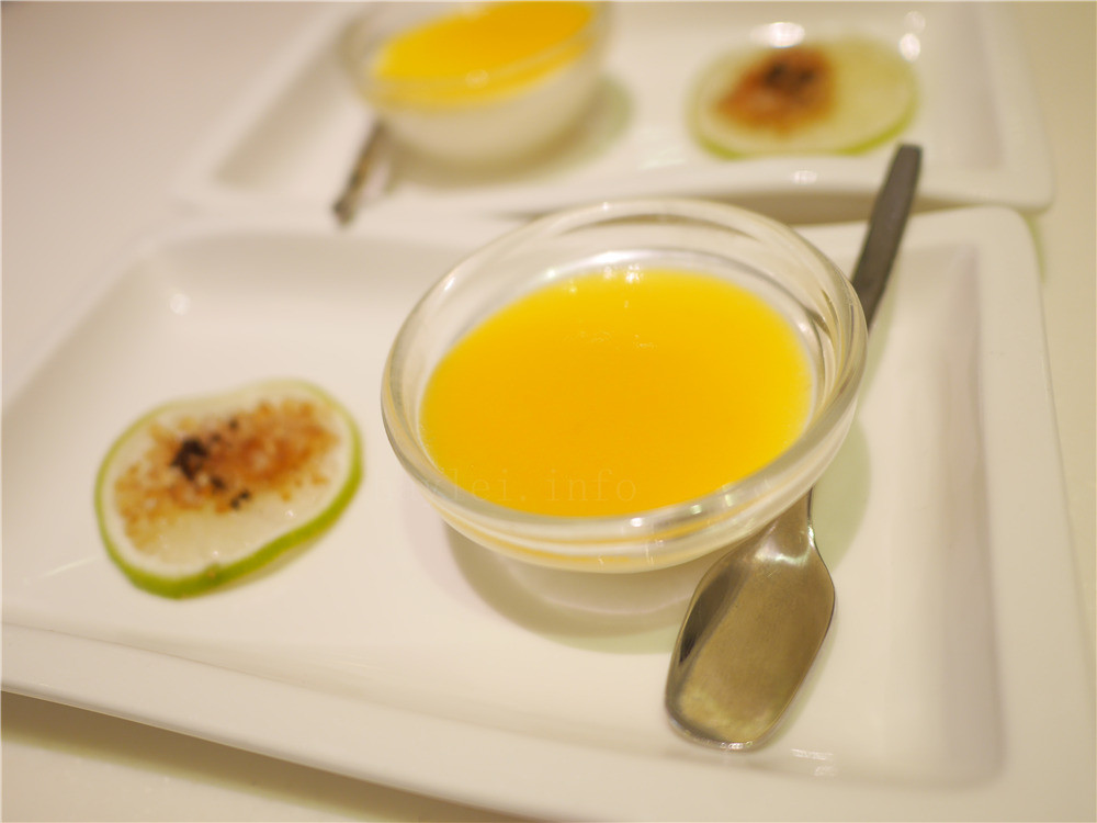 在一般套餐的甜點部分是芒果奶酪跟咖啡糖檸檬片。