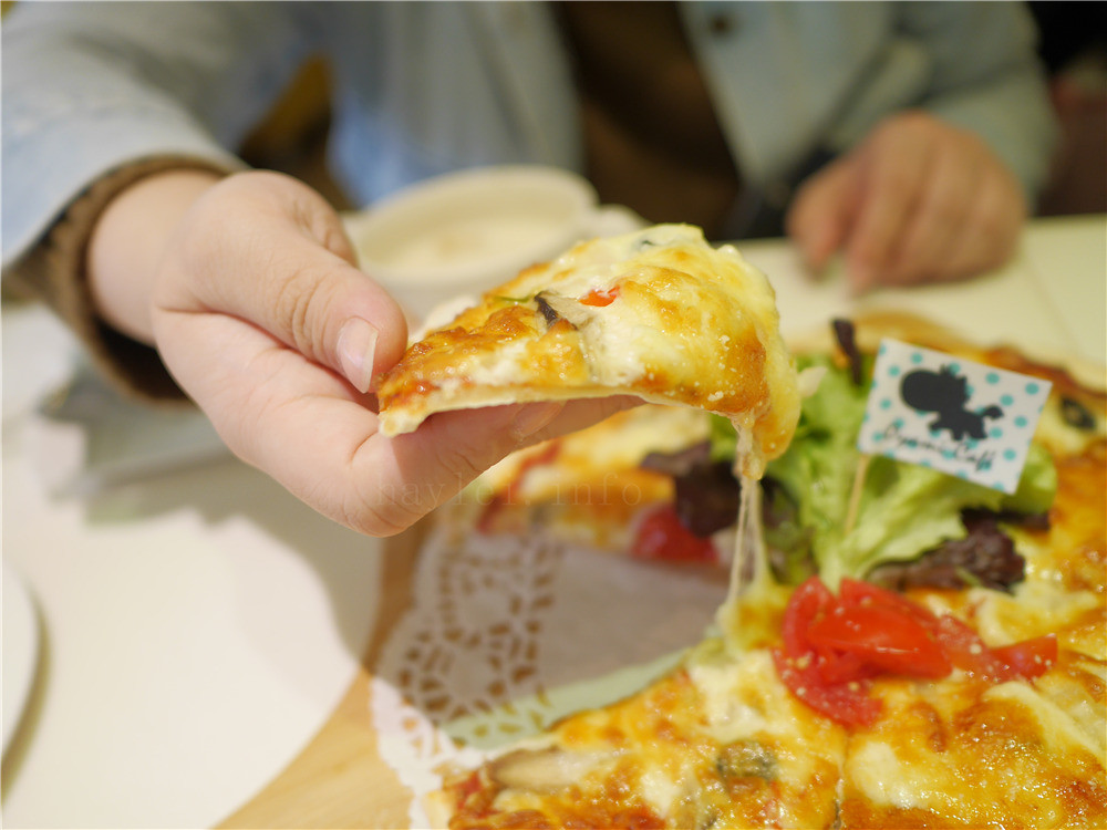 這裡的披薩都是手工製作,一份是九吋大小,配料豐富,滿滿的起司特別吸睛!