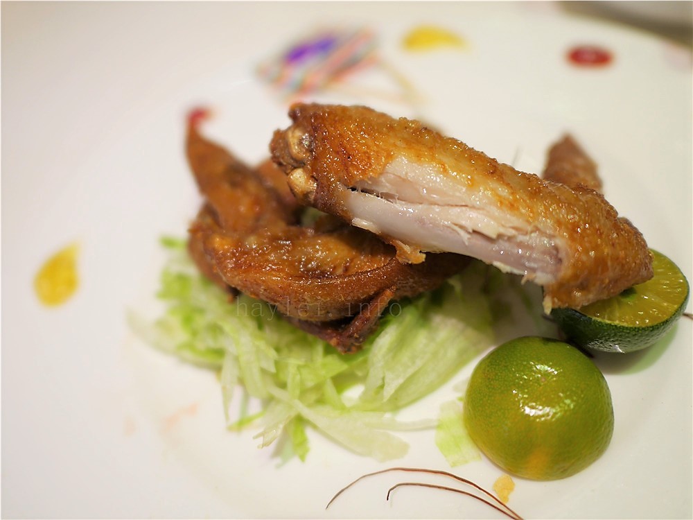 這道雞翅是微辣的,作法有點像紐奧良烤翅,但這是泰式口味,吃得出檸檬的香氣,越吃越香、一口接一口~