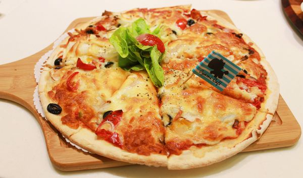 現烤出來的pizza熱騰騰上桌馬上開吃,皮酥餡軟。