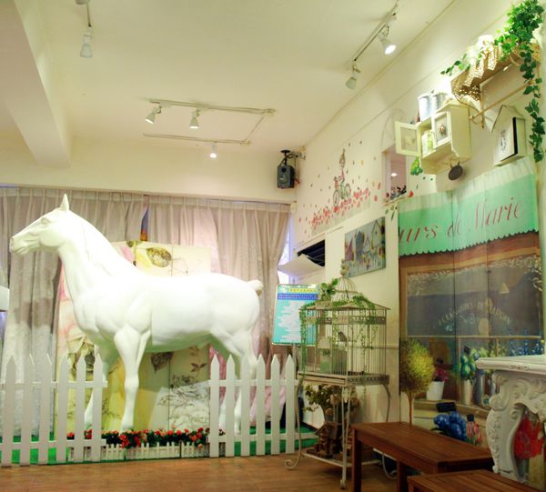 來到OYAMI CAFE的第一眼,就會看到一隻超大的俊俏白馬,代表來到了充滿幸福的國度。