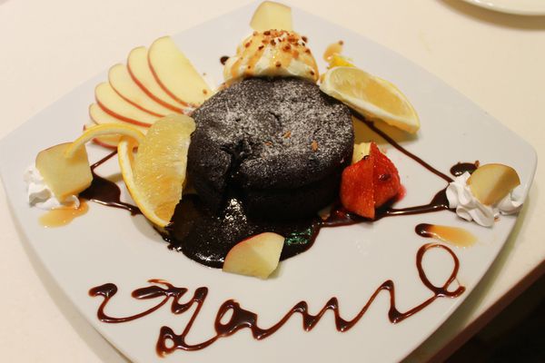 相對繽紛的夏威夷鬆餅,這顆黑嘛嘛的布朗尼低調了些。