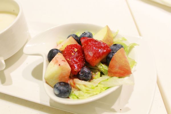 牛排的套餐還有加一份沙拉,生菜及水果都有,更加均衡。