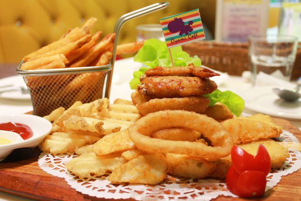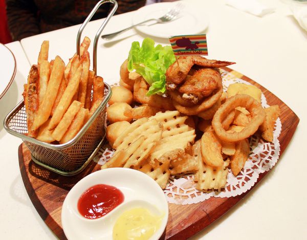 像疊疊樂般堆高的炸物組合有雞塊、薯條、薯格子、洋蔥圈、薯塊、雞翅、薯球…,哈哈聽起來就是馬鈴薯組合,但人多還是很推薦直接點組合,不同方式吃起來還是很不錯的。