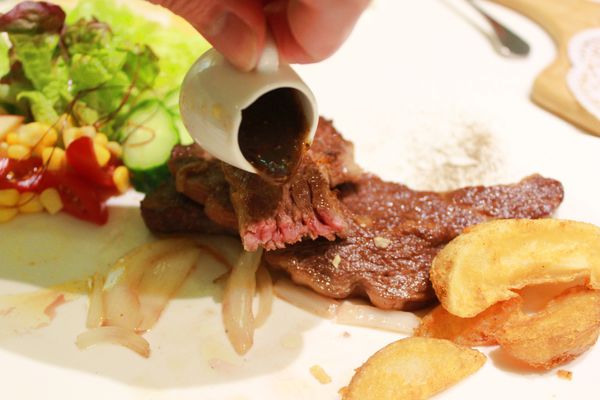 但加上店員特別介紹他們自家調製的牛排醬,也還不錯。