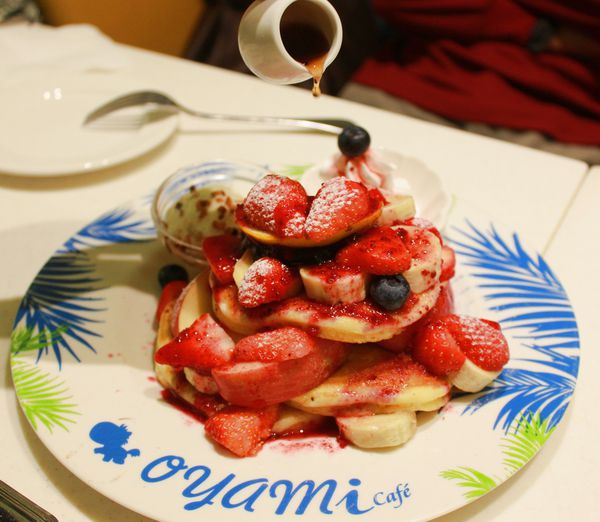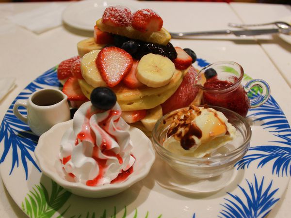 鬆鬆綿綿的pancake,以及滿出來的各式水果。