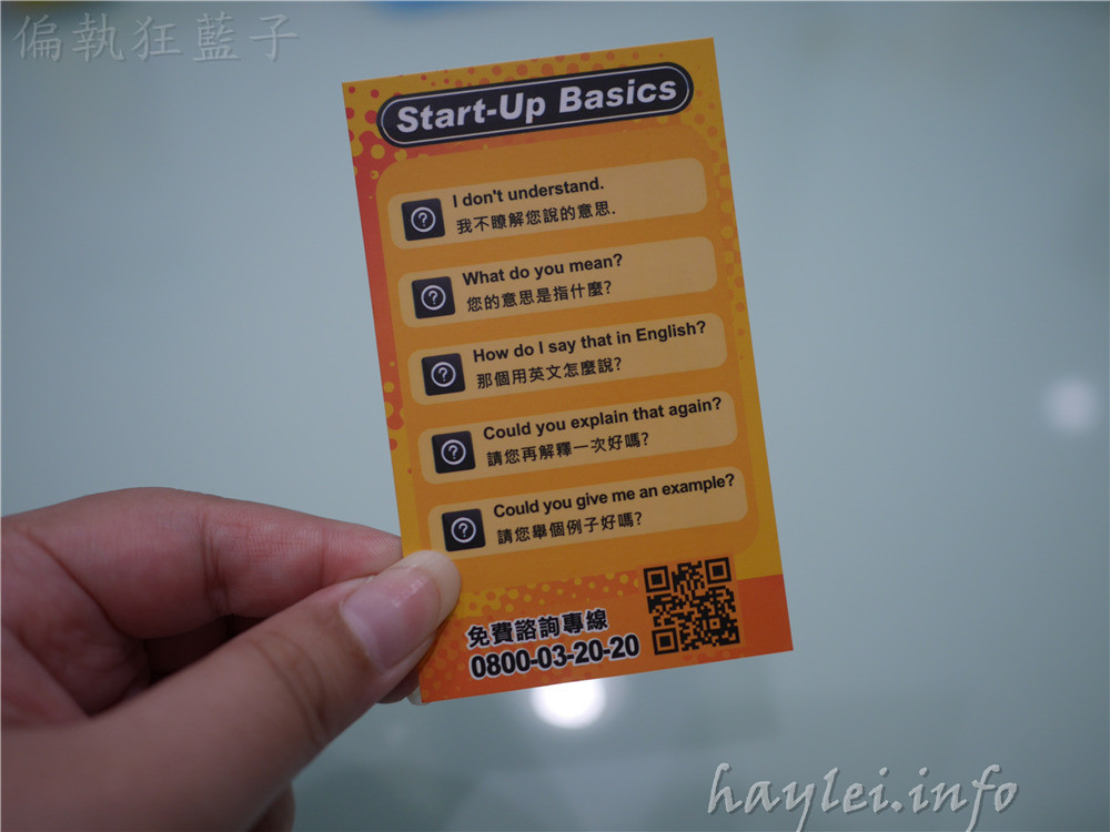 如果你真的有學習上的困難但是不知道怎麼開口跟顧問表達的話,你可以諮詢櫃台,可以拿到這張 基礎學習字卡(Start-UP Basics) 跟美語顧問溝通,這樣上課比較不會雞同鴨講或是不知所以然,整個學習過程也會更有效率唷~