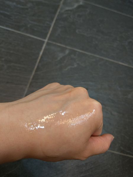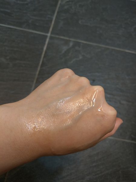 精華本身也是透明的,它有點滑滑的,感覺跟玻尿酸精華的觸感有點像,
