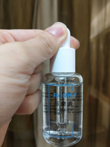 可以看到蓓樂膚激光煥彩淡斑精華是透明瓶,因為成份穩定,不裝避光瓶也能保持活性!