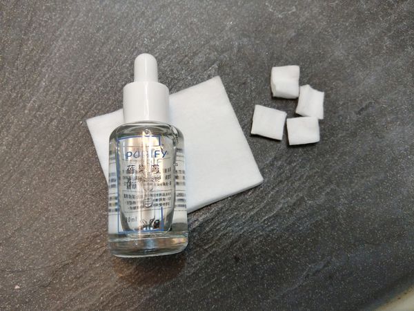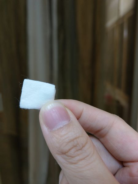如果想淡斑或是淡痘斑的,我自己是會把化妝棉剪成大約1*1cm大小,沾滿淡斑精華後做局部溼敷,