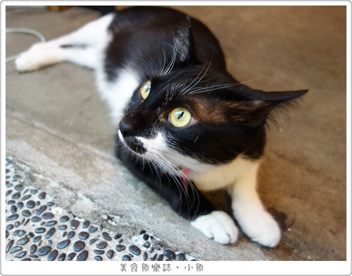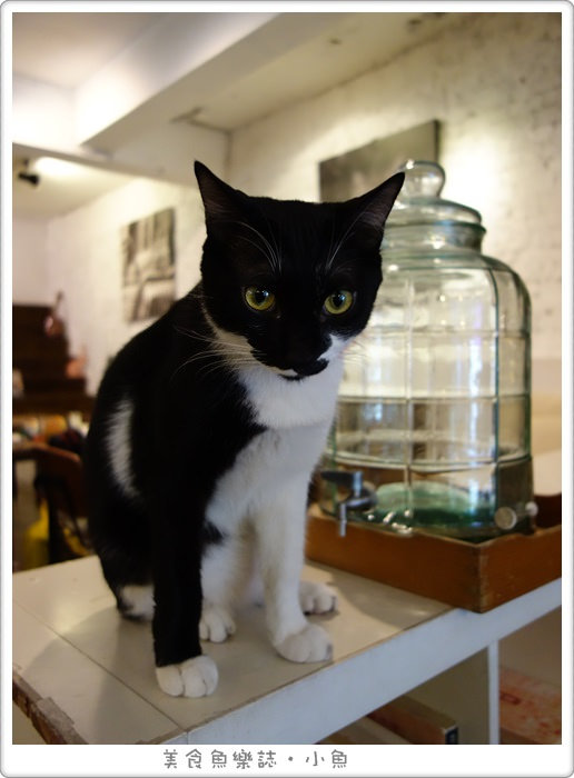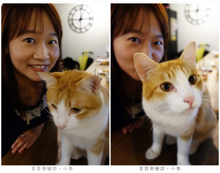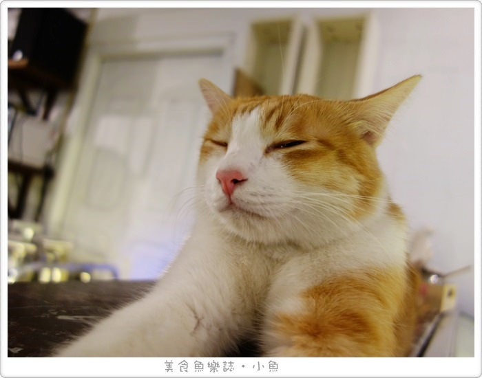 這餐吃得很不專心,一邊吃一邊看貓兒跑哪去了,阿男很盡責,只要有新客人進來,就會第一個跳到桌上打招呼,非常熱情好客