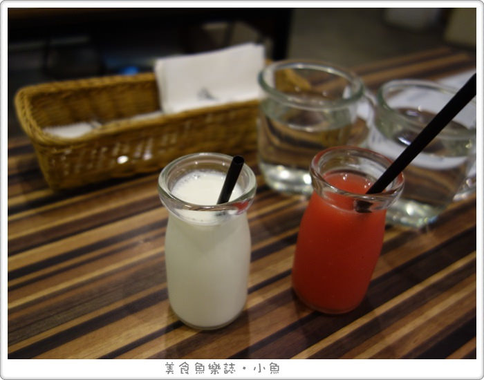 早午餐附的健康活力飲牛奶、果汁(西瓜汁)