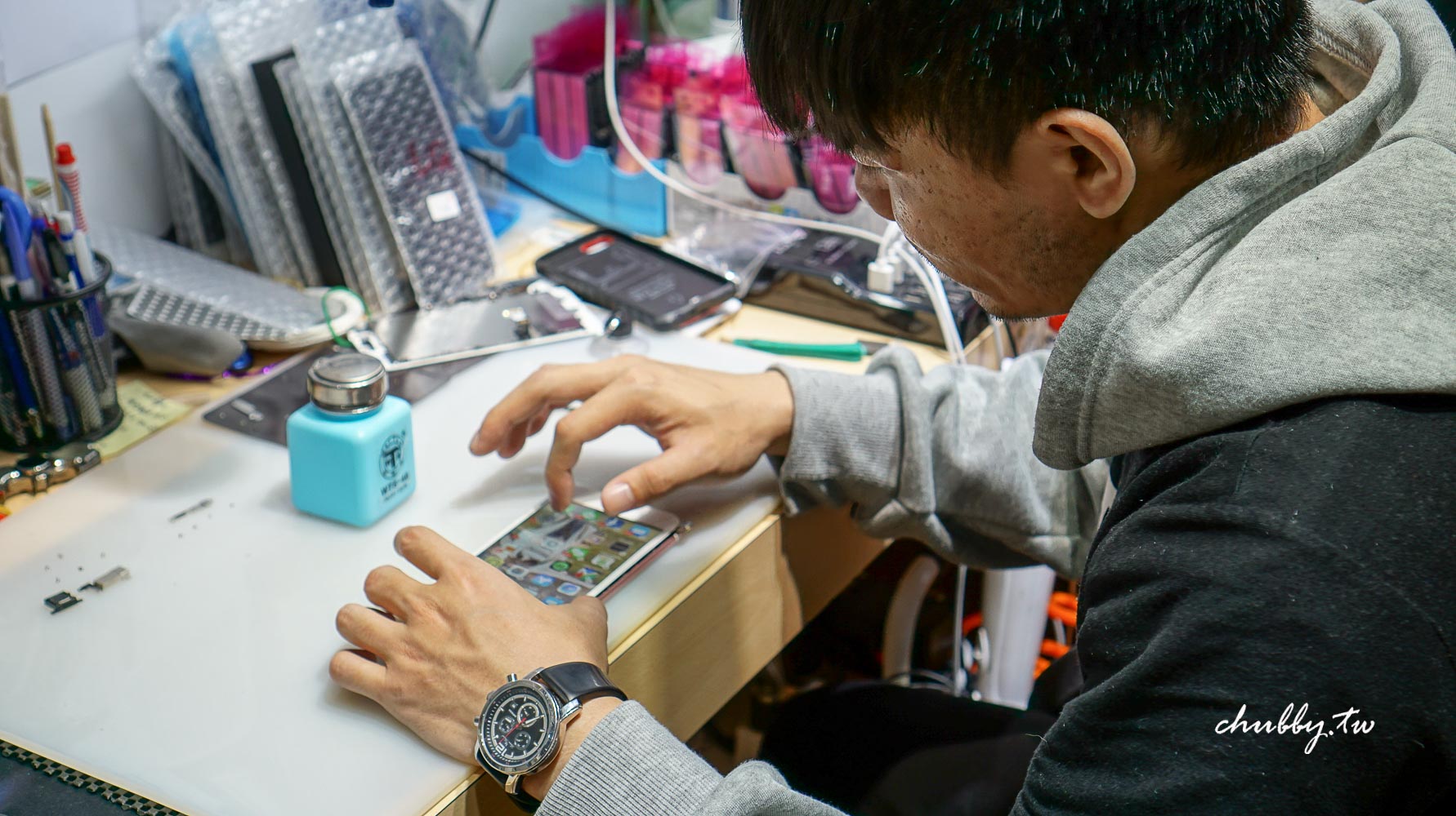 本來維修人員也以為是單純螢幕碎裂問題,檢測過程中發現可能主機板也出現問題,然後決定送進後方急診室進行確認: