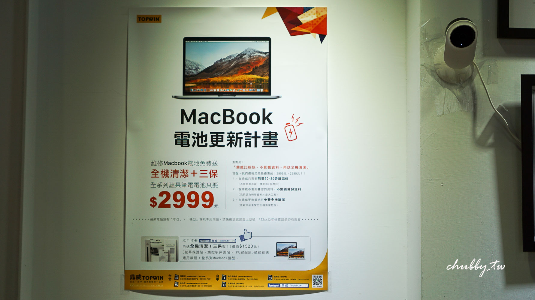 如果是MacBooK的使用者可以參考這個電池更新計畫,維修MacBook電池就送全機清潔+三保,只要2999元~我覺得非常非常划算~