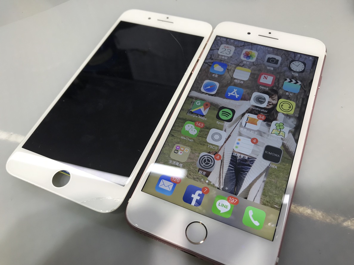 留機後大約經過 5 天,收到店員的通知說可以去拿手機了,因為我當時人在泰國,所以拜託老溫幫我取機~ 等手機到我手上時,已經是跟以前一樣是乾乾淨淨、完美如新的iPhone7 Plus! 維修好主機板,更換了面板: