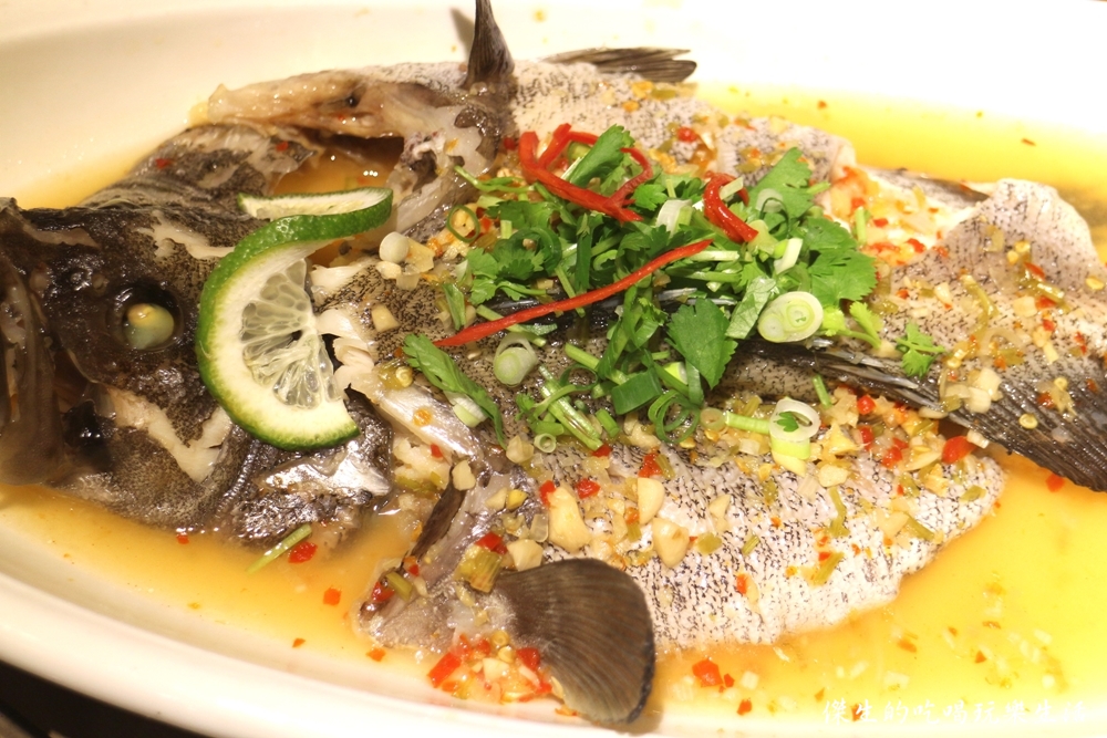 ▲第七道清蒸檸檬鱸魚~好大的一隻鱸魚~不僅肉質軟嫩滑順~還越嚼越有味~傑生跟友人一致讚賞~