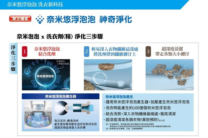 東芝Toshiba 17公斤奈米悠浮泡泡鍍膜變頻洗衣機還有個很威的「奈米悠浮泡泡」特色,
