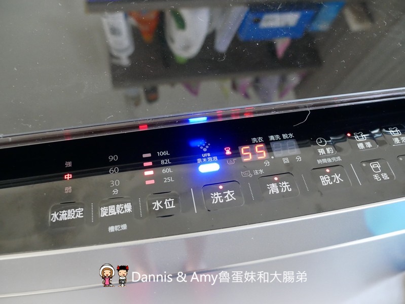 而且這台洗衣機還會發出LED藍光,除了表示洗程當中會注入奈米悠浮泡泡之外,