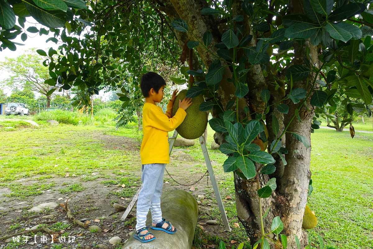 這麼大顆的波羅蜜我們還是第一次見到,東仔好奇的東摸摸、西看看