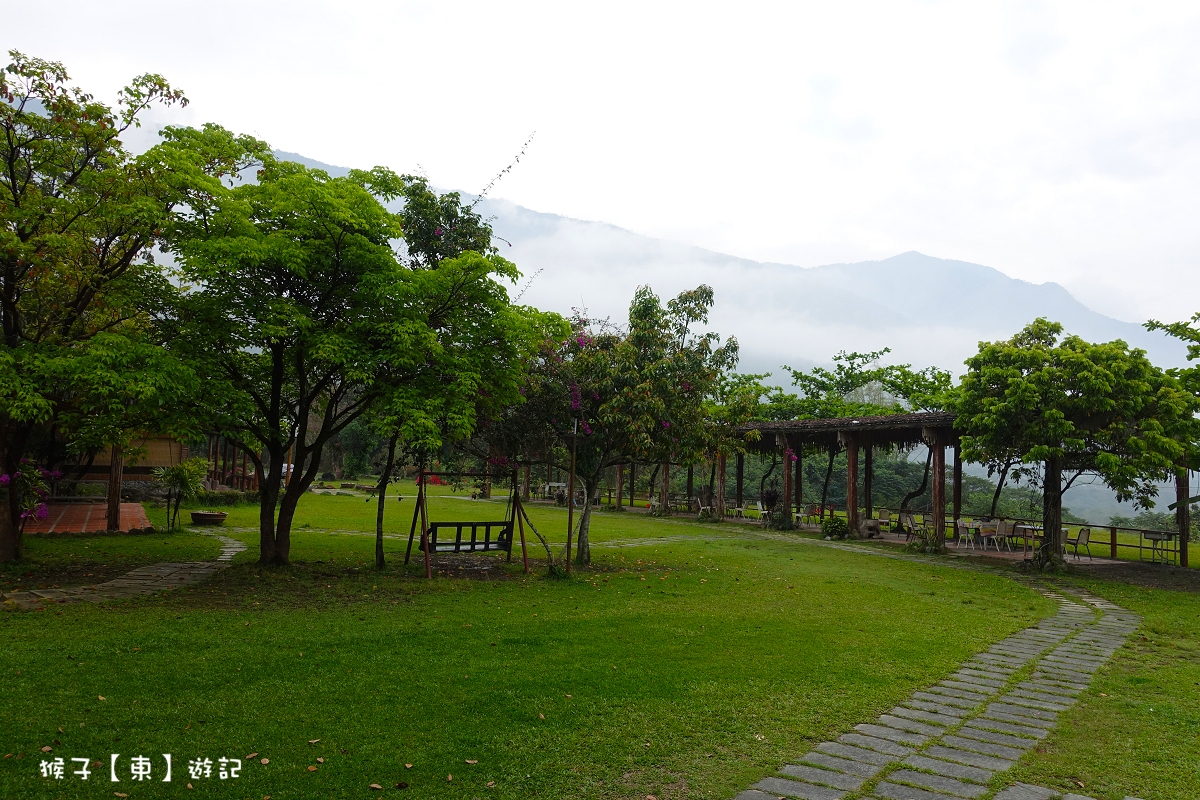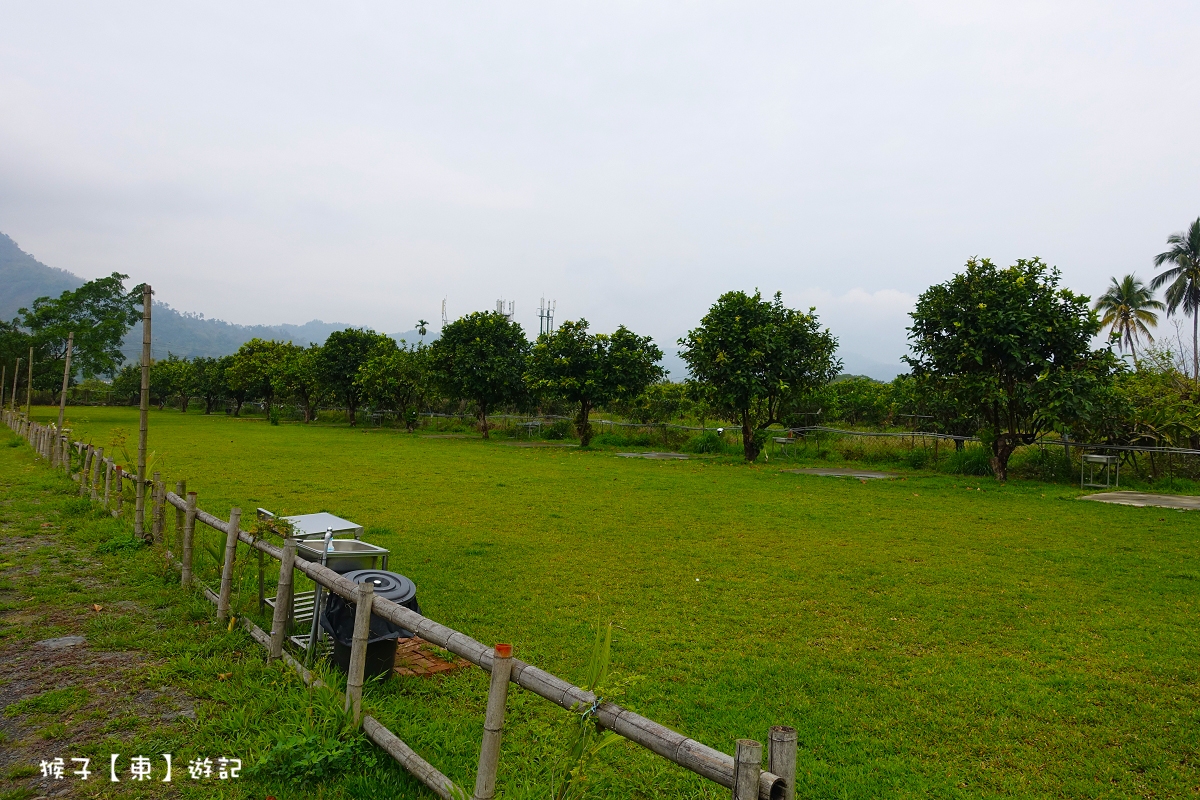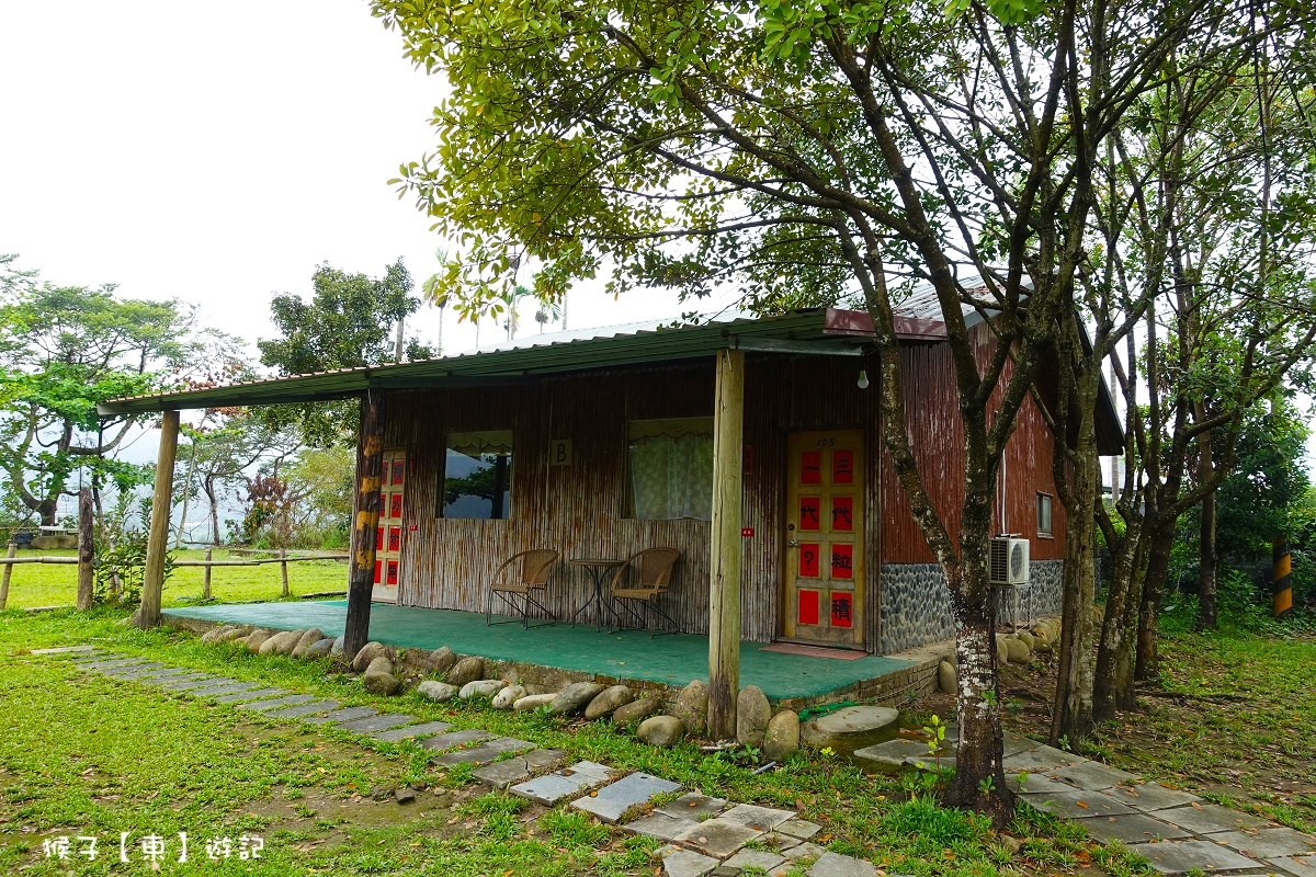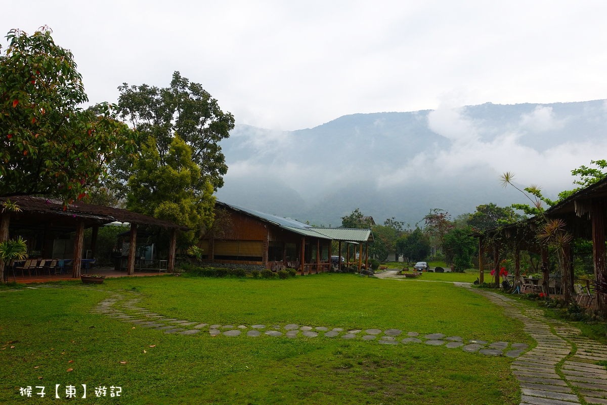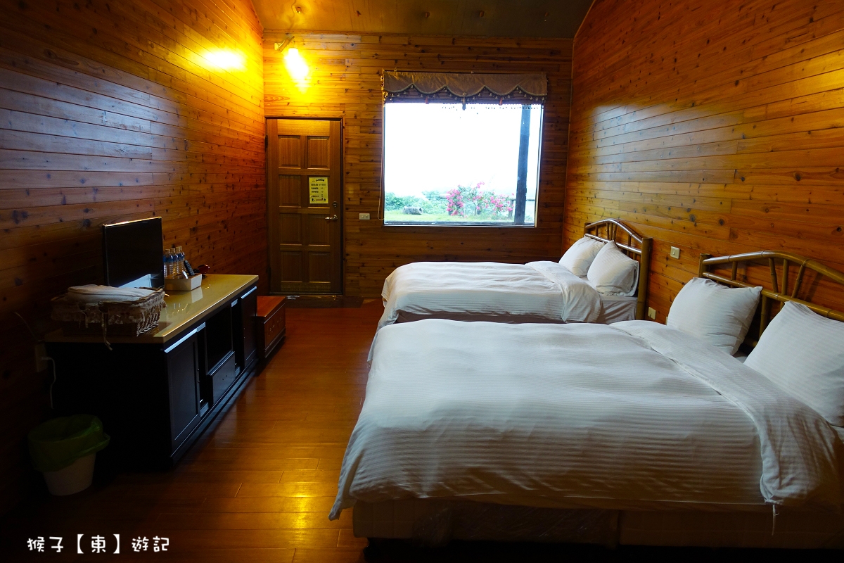 老闆向我們大略介紹一下環境,穿越大草皮走到底就是我們晚上下榻的小木屋區