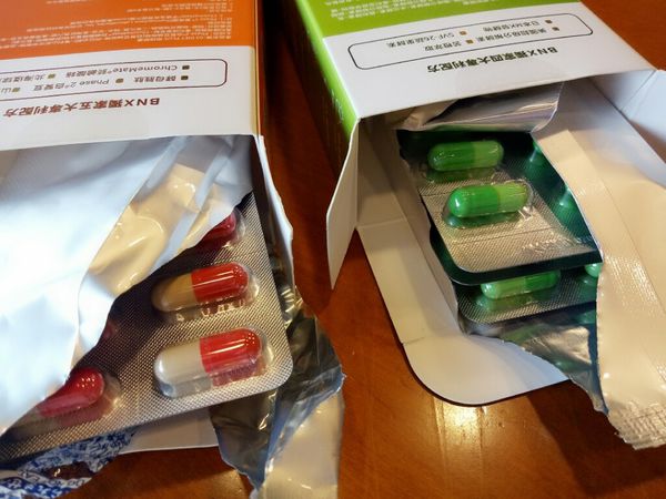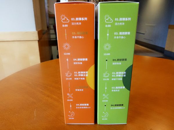 外盒的另外一面還印有8:00-23:00教你怎麼吃,不過我作習沒有那麼正常,我目前就是橘色的餐前30分吃一顆,綠色的餐後30分吃一顆。