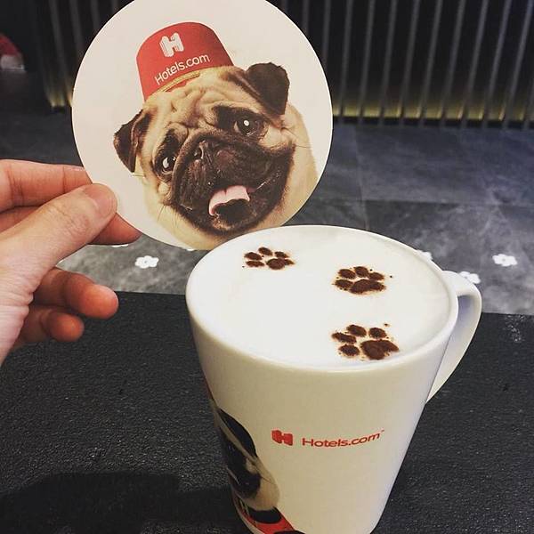 還可以拿牌子跟Hotels.com的迎賓大使狗合照,挺有趣的。