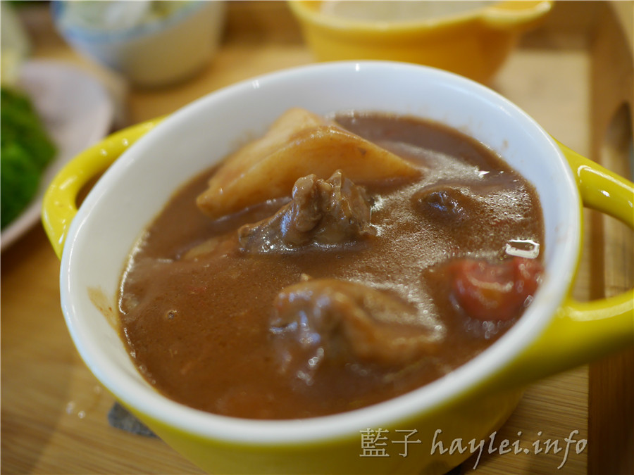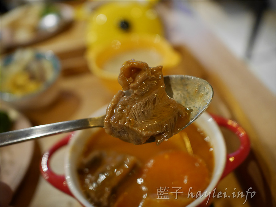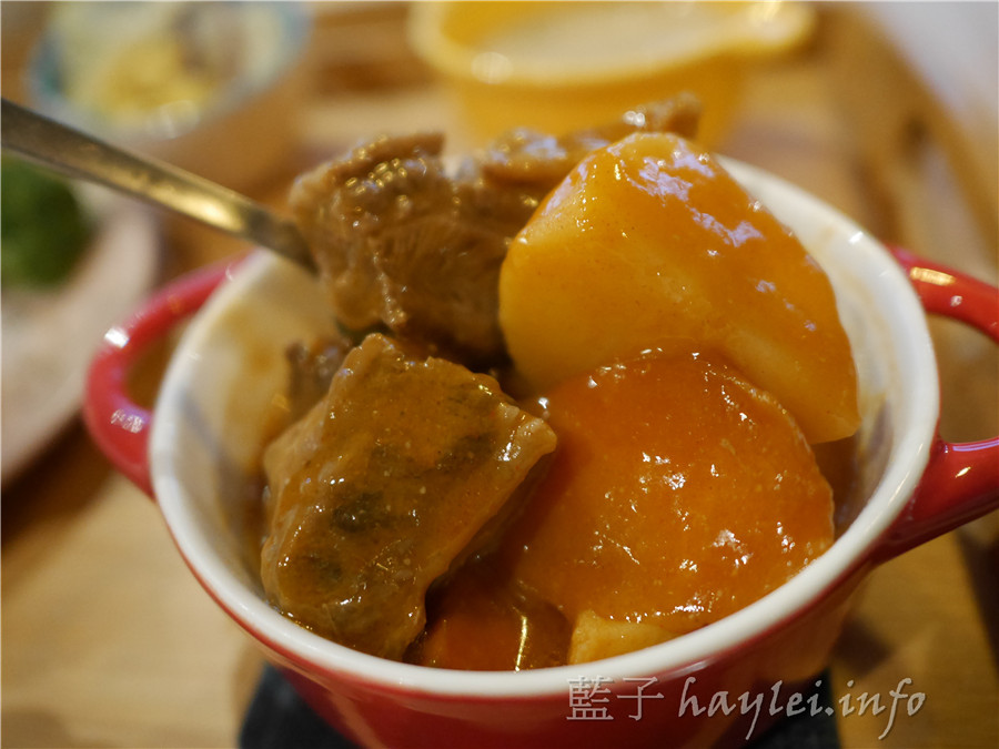 韓風辣味增燉牛腩裡面有牛肋條、馬鈴薯、紅蘿蔔等配料,在吃的時候,牛肉燉的軟香,辣度幾乎感覺不到,甜甜香香的味噌氣息讓我越吃越順口,不論大人小孩都很適合品嚐唷~
