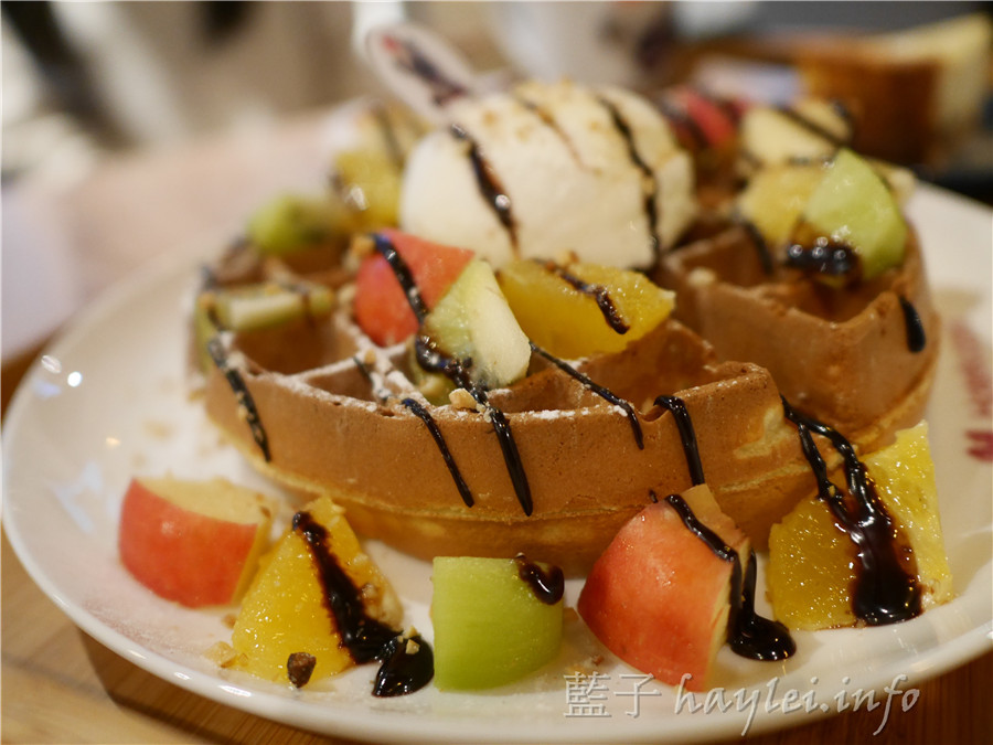 滿滿的巧克力醬跟香草冰淇淋還有豐富的水果們看起來特別迷人,豐富的配料搭配鬆餅扎實的口感,讓每一口都有真正吃到東西的感覺,特別有飽足感!