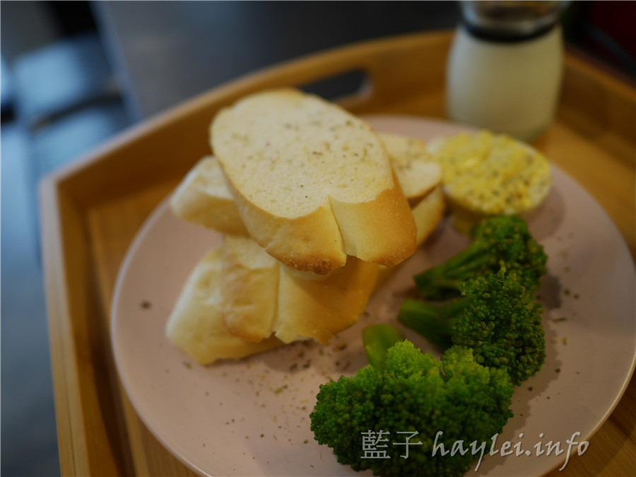 我選擇軟法麵包搭配著吃,搭配著店內環境,感覺特別像在國外用餐呢!