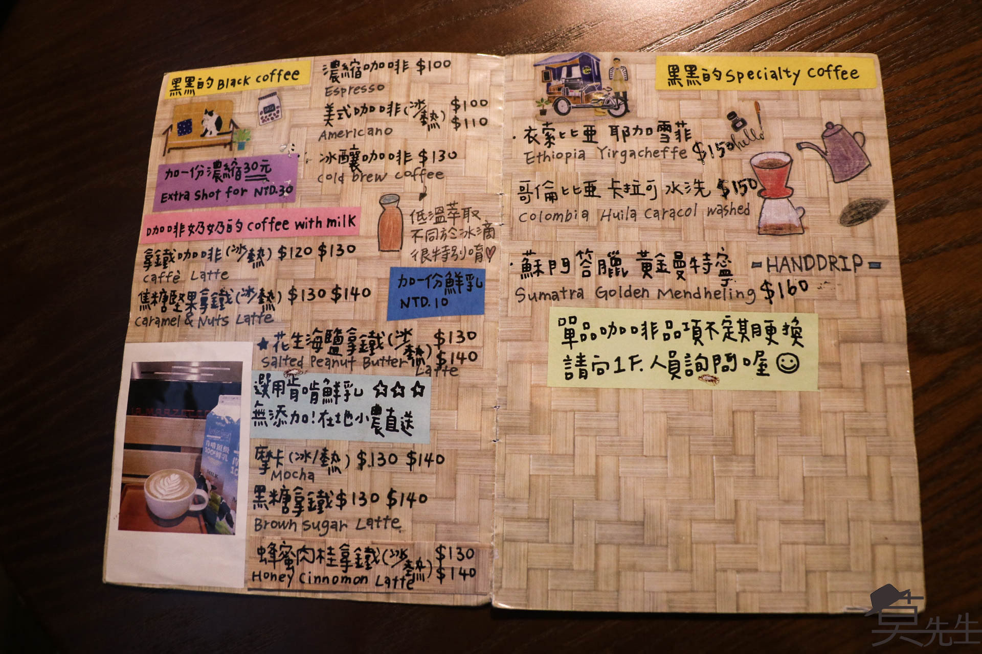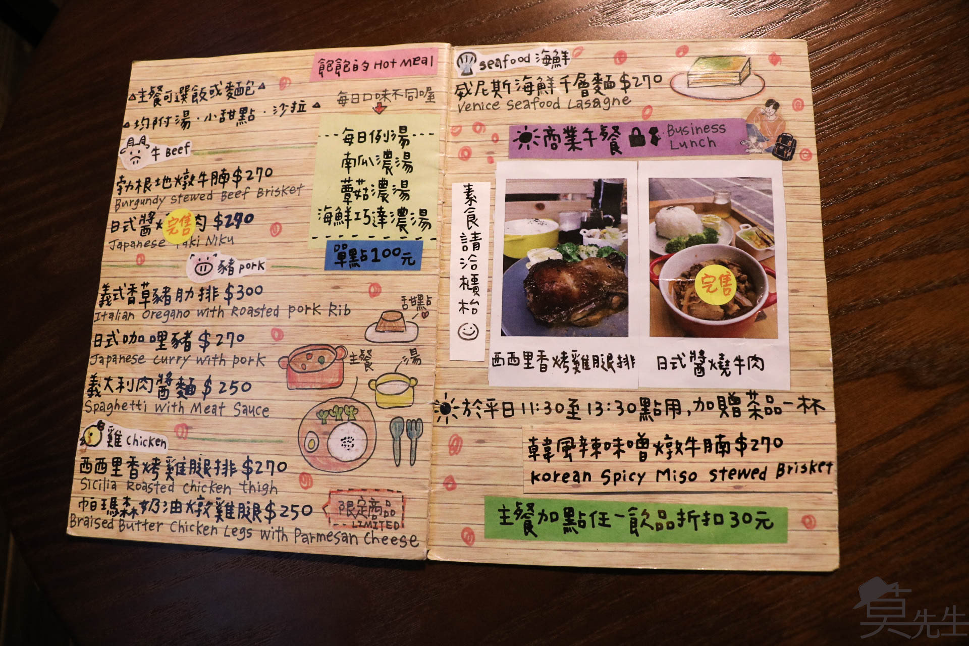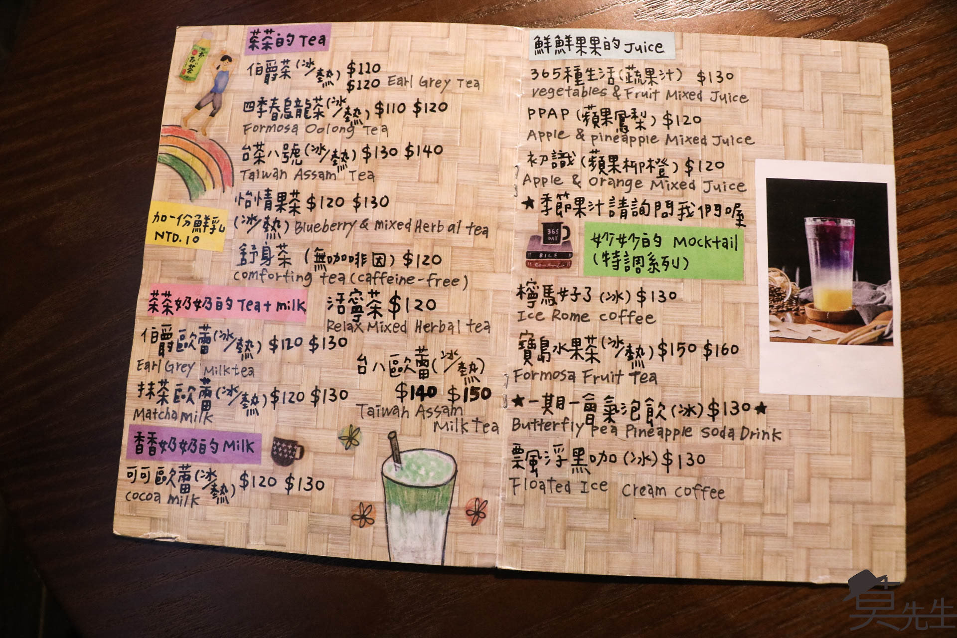 Menu 是可愛的手繪風,清楚地呈現種類繁多的餐點分類