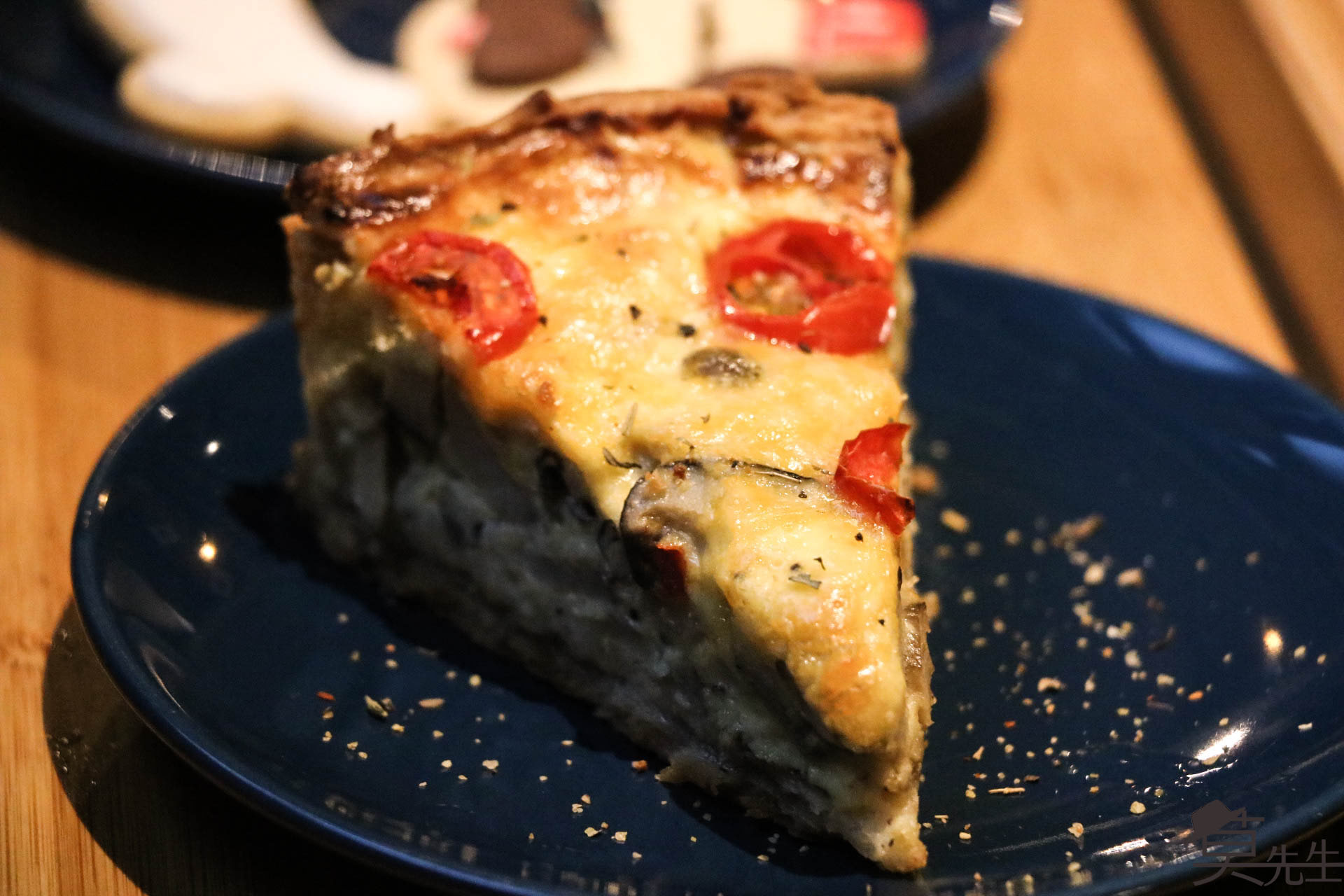 搭配的甜點為野菇鹹派 。以鮮奶與雞蛋為基底,裡面有不同種類的菇類以及洋蔥,一定要趁熱吃,才能充分品嘗鹹派的溫暖感!
